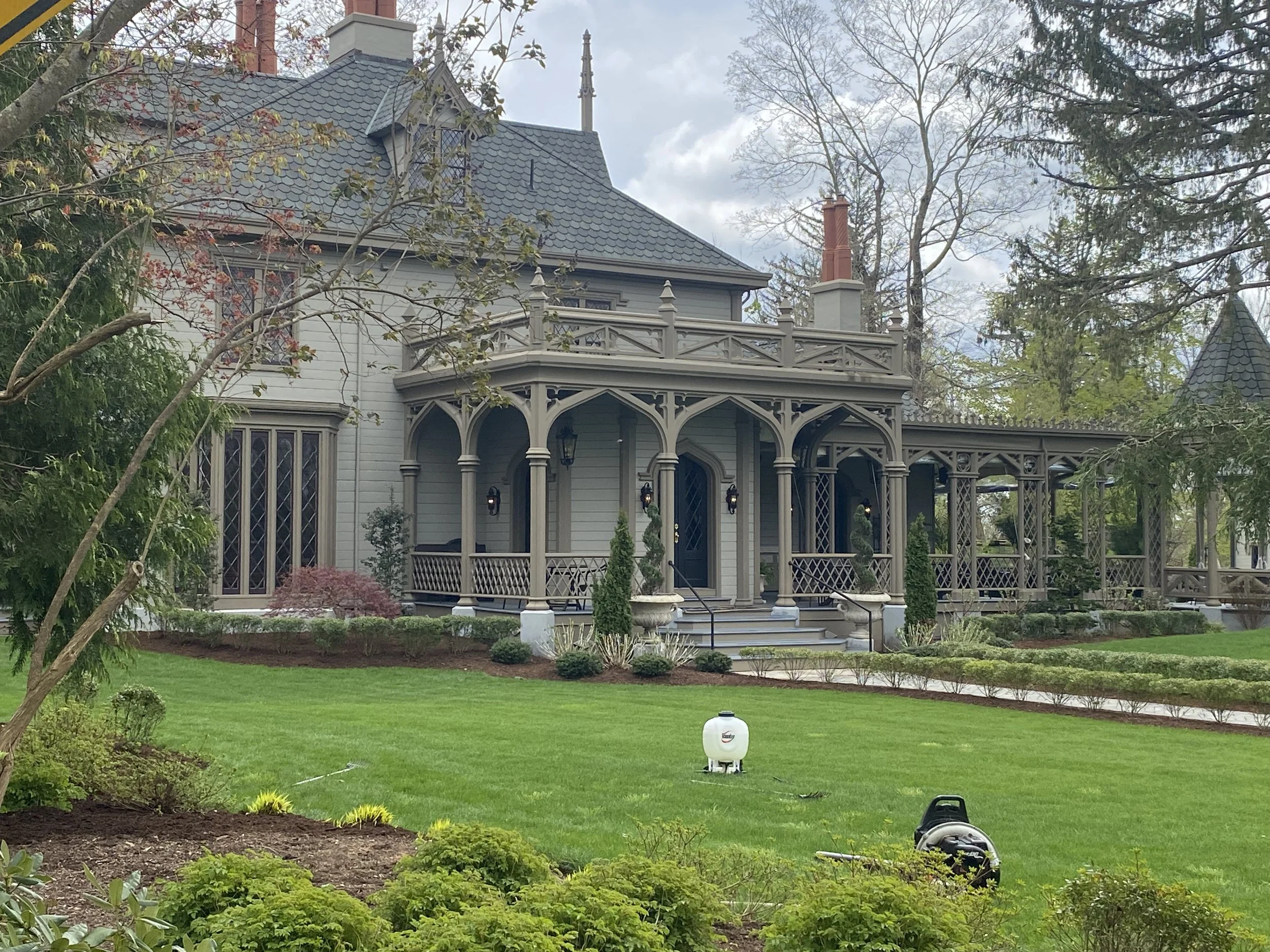 The stairs were in the tall octagonal tower, for which we also built the roof